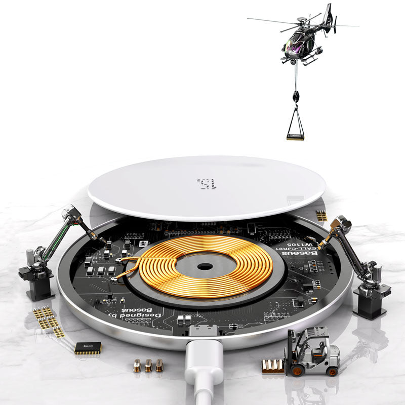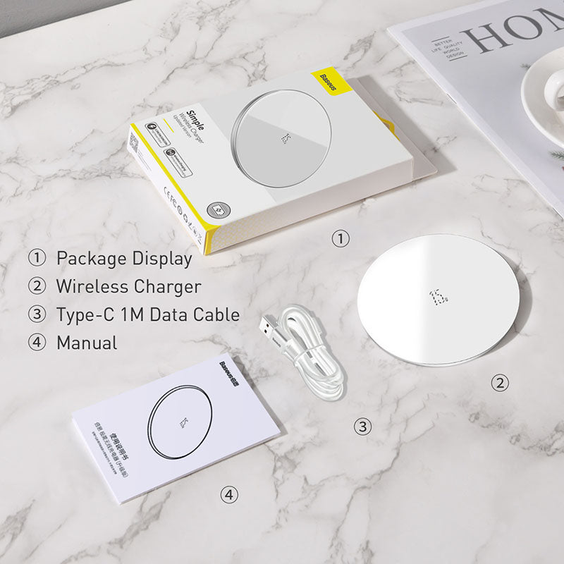 Baseus Simple Wireless Charger 15W (Qi Certified) for Any Mobile Phone with Wireless Charging Function & Airpods (WXJK-A02)