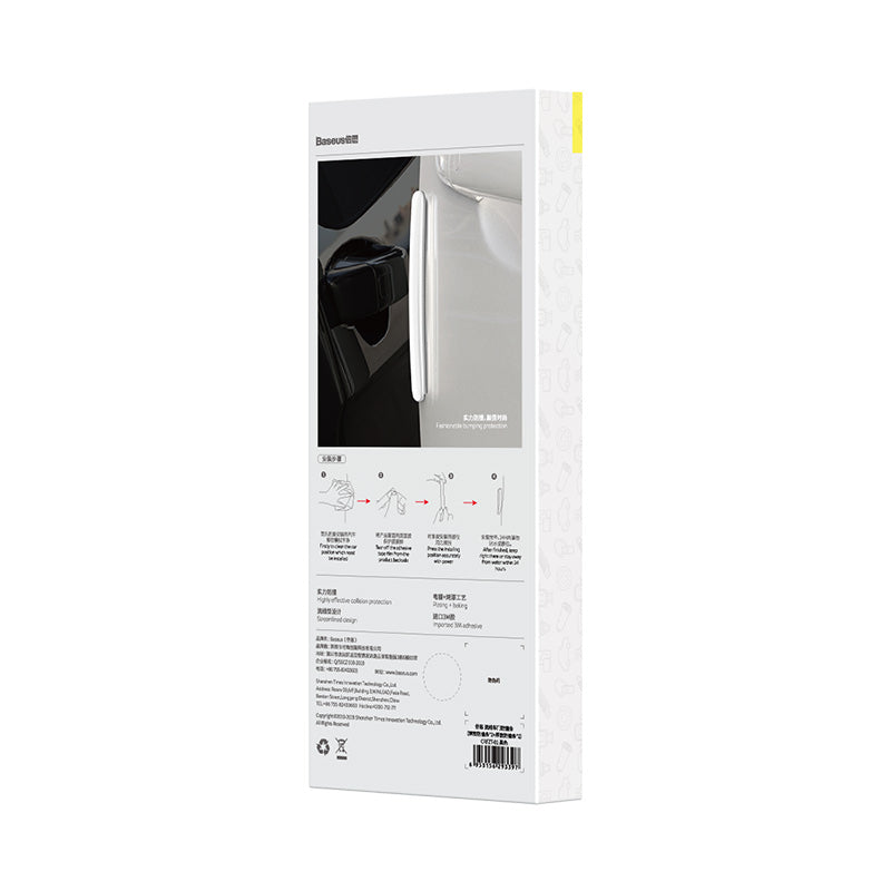 A package of four Baseus protective bumpers for car doors, protects the edges from impacts and scratches. They prevent scratches on both your car doors and the cars parked next to them.