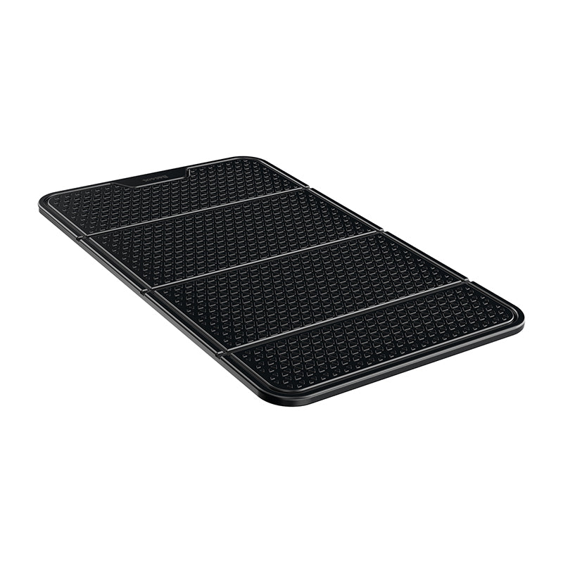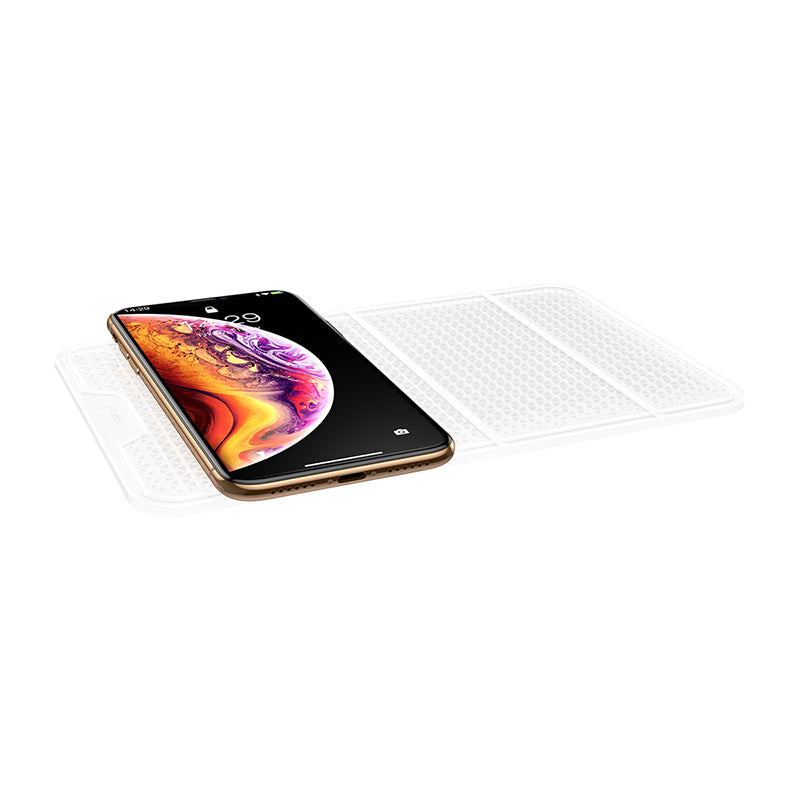 The flexible mat is made of soft plastic and its surface is finished with a special texture. Thanks to the material and structure, it adheres perfectly to smooth surfaces. If you place it on the dashboard, it will be the perfect holder for your watch, cable or car charger.