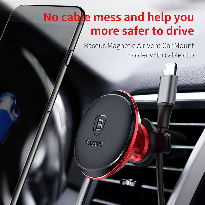 Baseus Magnetic Air Vent Car Mount Mobile Holder With Cable Clip