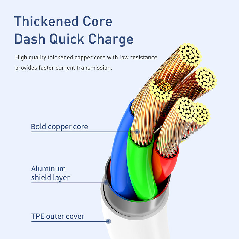 The USB - Micro cable supports 2.4A fast charging and 480Mbs data transmission. It is designed to withstand long and intensive use.