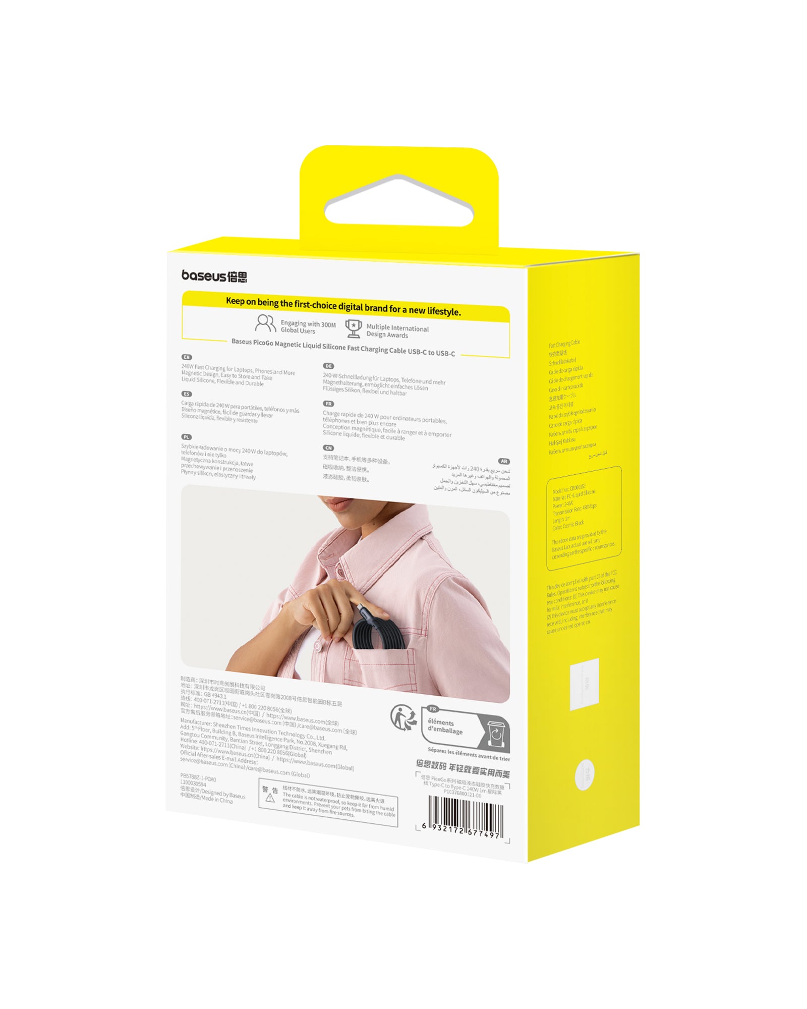 This 1-meter USB Type-C cable features a USB-C connector, making it ideal for fast and reliable connections. With built-in magnetic connection technology, it ensures easy and instant connection without any hassle.