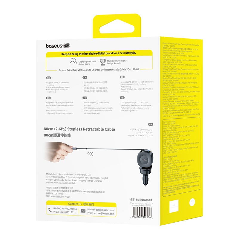 Baseus PrimeTrip VR2 Max Car Charger with Retractable Cable 3C+U 163W
