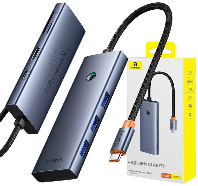 The Baseus UltraJoy 7-in-1 Hub is a versatile solution that will transform your experience with mobile devices and computers. The HDMI port offers impressive 4K@60Hz image quality, while remaining compatible with various resolutions. One-button quick disconnect makes using the hub incredibly intuitive, and high-speed data transfer at 5Gbps speeds up your file work. Additionally, multiple layers of security ensure the safety of your devices, and the variety of ports allows you to connect multiple devices simultaneously. The Baseus UltraJoy 7-in-1 Hub is the perfect tool for those who value convenience, performance, and reliability in their everyday electronics use.