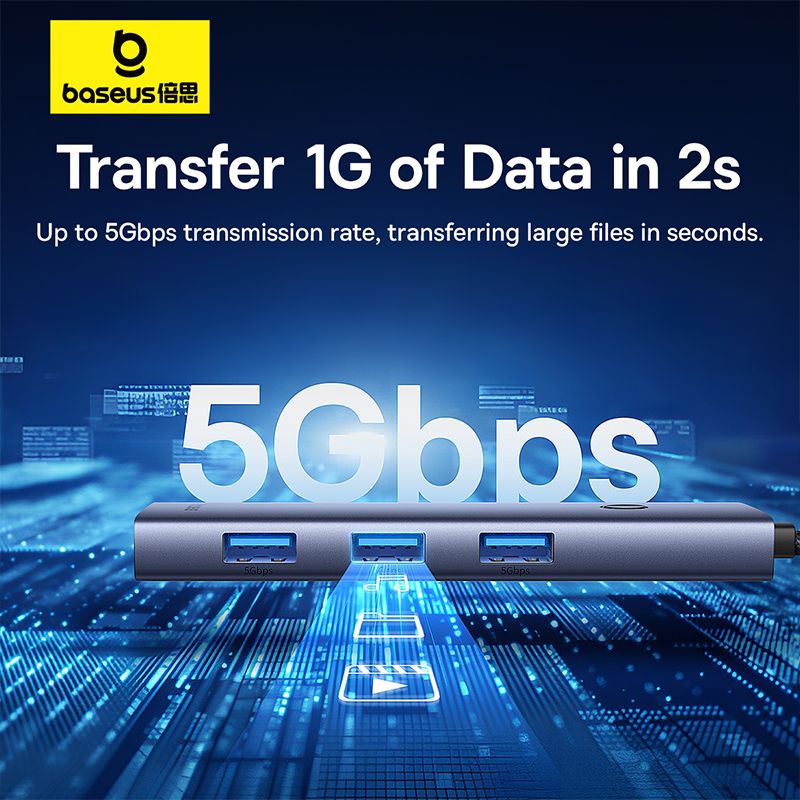 File transfer has never been this fast! The Baseus UltraJoy 7-in-1 Hub enables data transfer at speeds of 5Gbps, which means you can transfer files in the blink of an eye. Whether you're working with large files or just moving your favorite movies, this hub ensures reliability and speed.