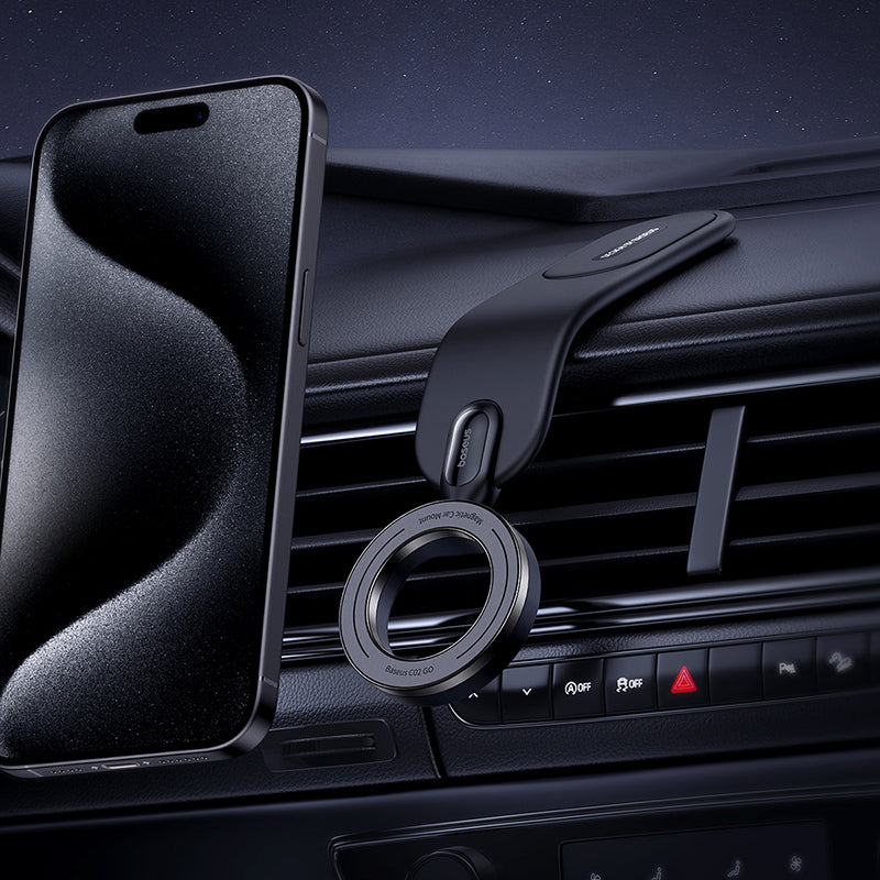 Enjoy navigation comfortably while traveling in your car. Baseus C02 Go holds your smartphone stably thanks to strong magnets and won't obstruct your visibility while driving. What's more, you can adjust the position of the holder for more convenient use and operate your smartphone with one hand.