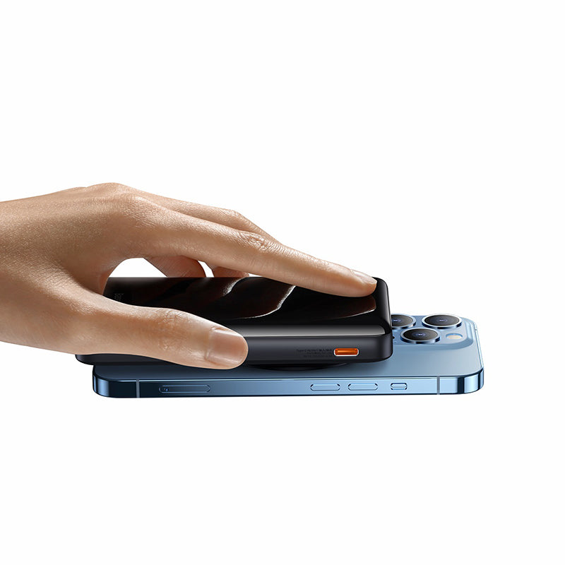 The Baseus Magnetic Bracket powerbank is a powerbank with a capacity of 10000mAh with MagSafe wireless charging, thanks to which we can achieve fast wireless charging of up to 20W. The powerbank has been equipped with a foldable stand that will allow you to charge your smartphone in a standing position. There were also standard sensors, such as overvoltage and overload protection.