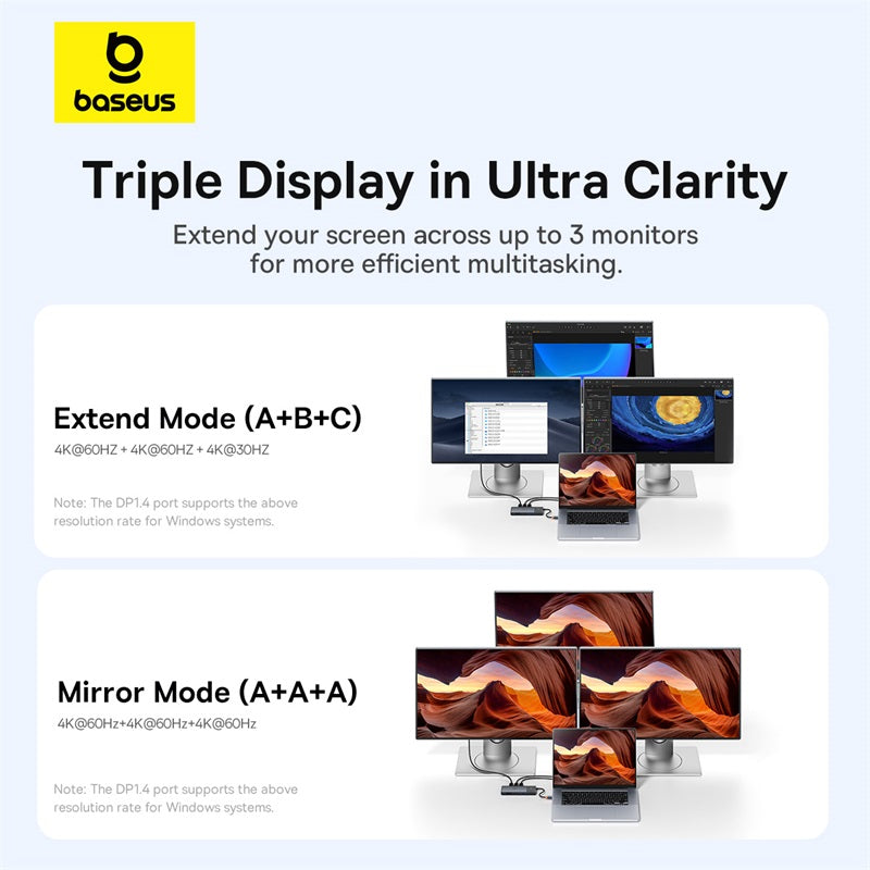 The ability to connect up to three screens simultaneously is a real treat for multitaskers. The Baseus Metal Gleam enables work on multiple screens at once, significantly increasing efficiency and work comfort.