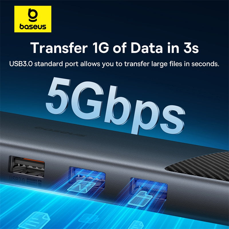 Thanks to the presence of USB-A ports with data transmission speeds of up to 5Gbps (USB1) and 480Mbps (USB2), the Baseus Metal Gleam allows for lightning-fast file transfers. This is the perfect solution for those who value efficiency and speed, especially when working with large files.