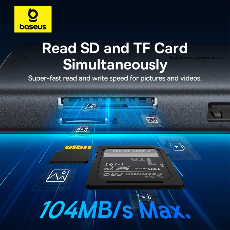 The adapter offers simultaneous reading of SD and TF3.0 cards with speeds of up to 104MB/s. This is an excellent solution for photographers and multimedia creators who need quick access to their materials.